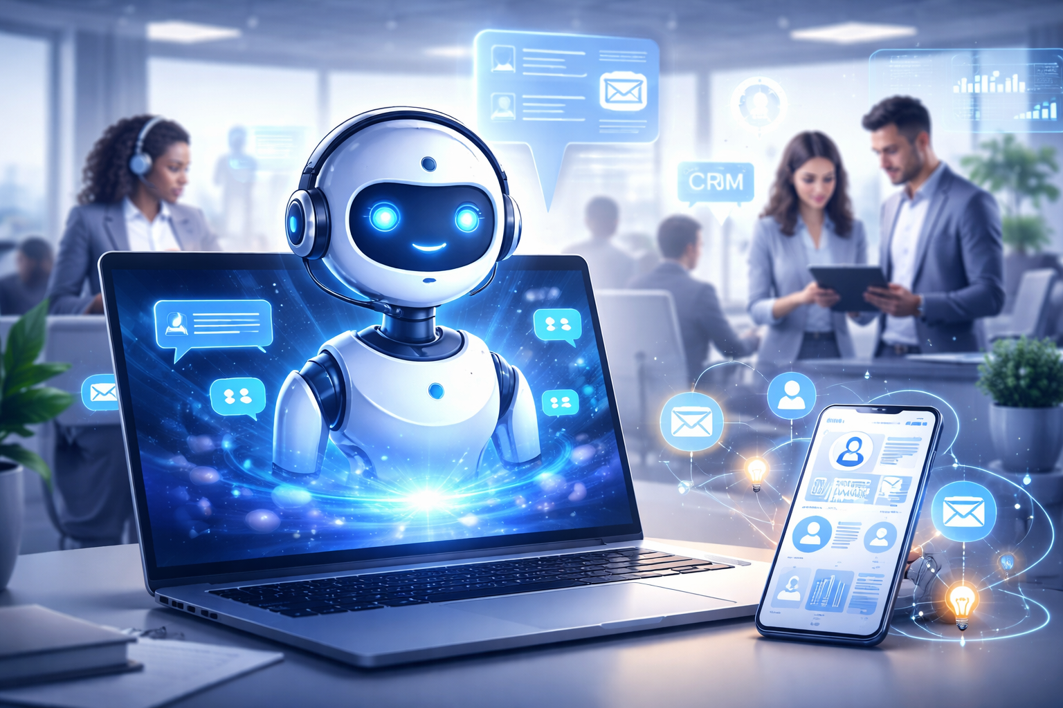 Integrated with the CRM, AI helps analyze leads, predict customer behavior, and suggest next best actions.