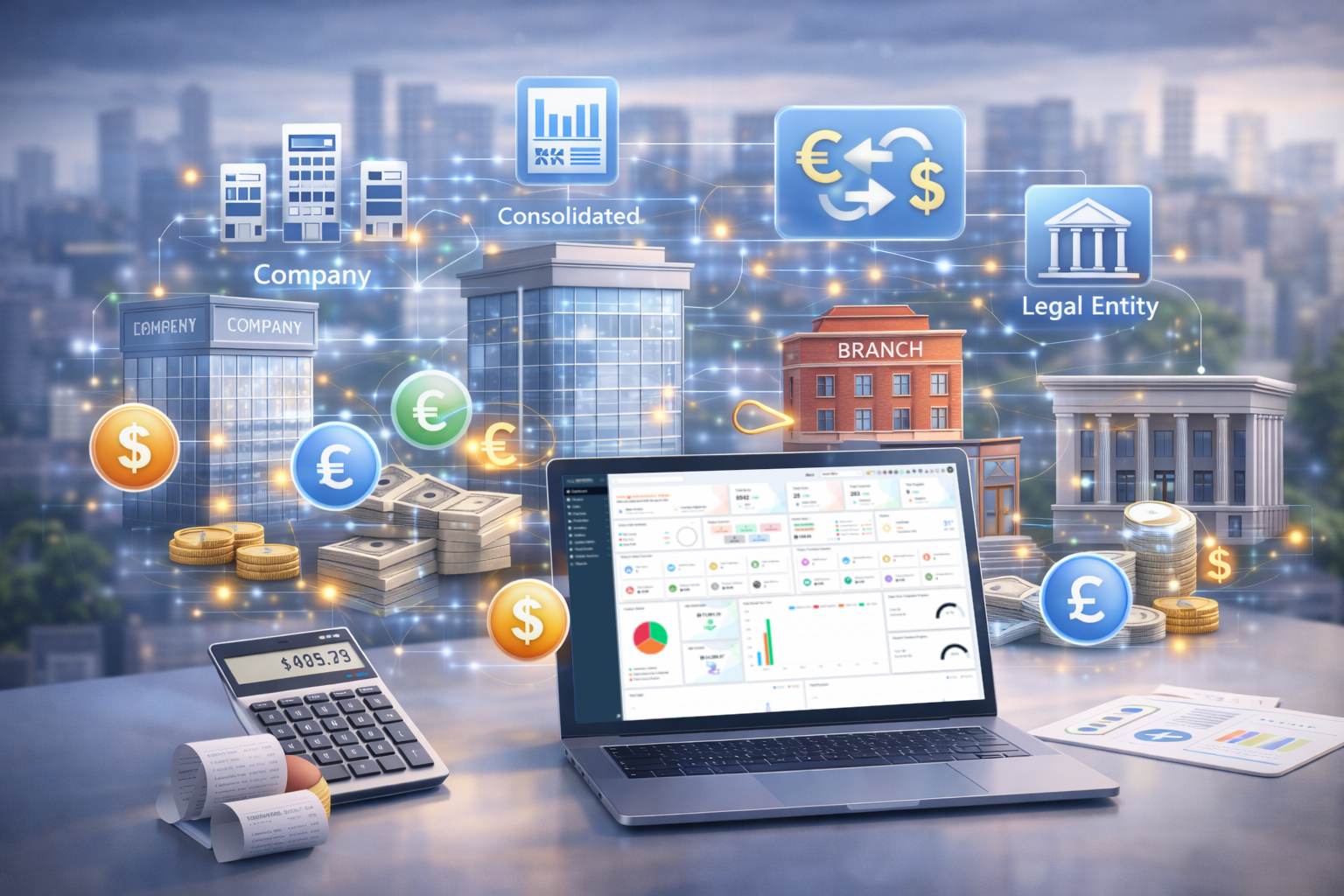 Yes. You can manage multiple companies, branches, and currencies in a single system, with inter-company transactions and consolidated reporting.